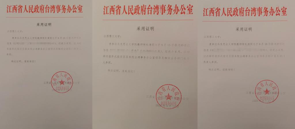 以“笔”深耕赣台交流,用“智”助力祖国统一。我院何长清老师近期撰写的3份资政报告先后被江西省人民政府台湾事务办公室采纳,并以内部专报形式呈送国务院台湾事务办公室领导及相关业务部门负责人参阅,凸显了我院服务“国之大者”的意识和能力,开创了我院智库建设新局面。