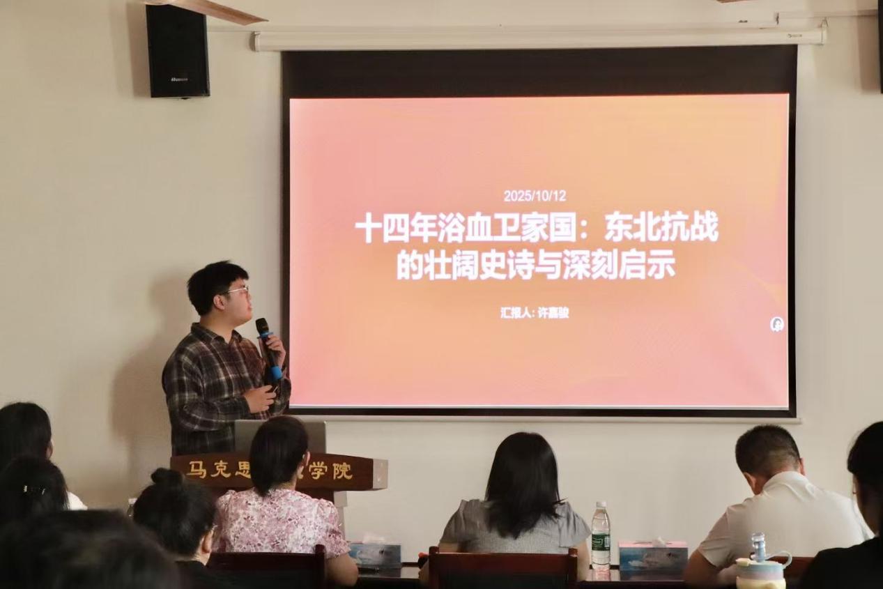 本网讯 为深入学习贯彻习近平新时代中国特色社会主义思想,纪念中国人民抗日战争暨世界反法西斯战争胜利80周年,同时为遴选学院青马宣讲团新成员、强化青马宣讲团建设,10月12日上午,我院在学院楼313室举办“抗战”主题宣讲比赛。校团委组织部副部长刘芳、土木与测绘工程学院学工办副主任尹媛琳子、资源与环境工程学院专职组织员张小普担任教师评委,2024级研究生柏紫怡、钟玉欣担任学生评委。本次宣讲比赛由学院2025级研究生王惠颖主持。
