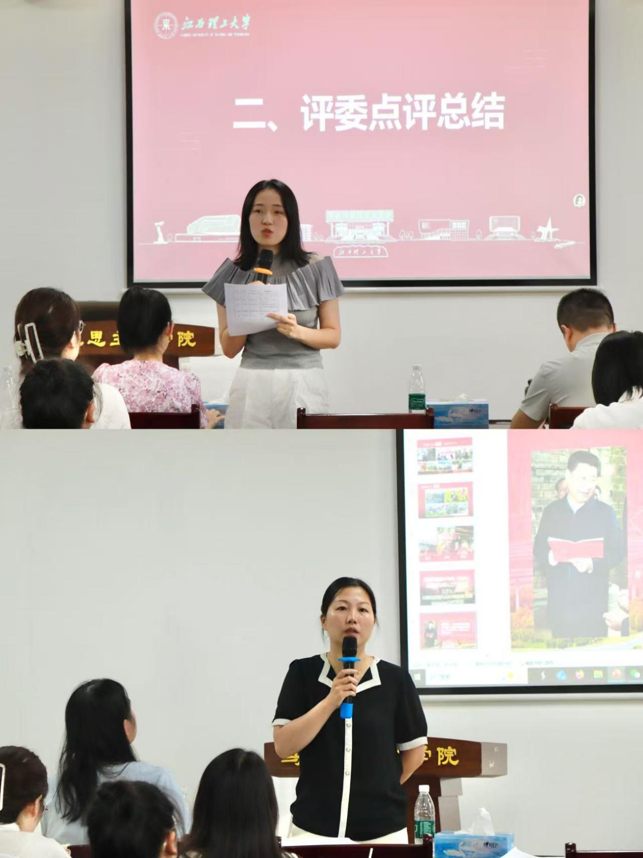 在点评环节,尹媛琳子从选手的课件形式、素材内容和舞台表现进行点评。她表示,本场比赛不仅为同学们提供了展示自我的平台,更是一堂生动且深刻的爱国主义教育课,希望大家今后积极为革命传统教育贡献自己的青春力量。学院辅导员陈珍玉老师建议选手们以小见大、联系实际,讲述通俗易懂的故事,引发观众共鸣,做一个思想的“翻译官”、故事的“酿造师”。此外,学生评委也结合自身实践经验,从语言表达、情感传递等角度提出可行性建议,并现场进行简短宣讲示范。