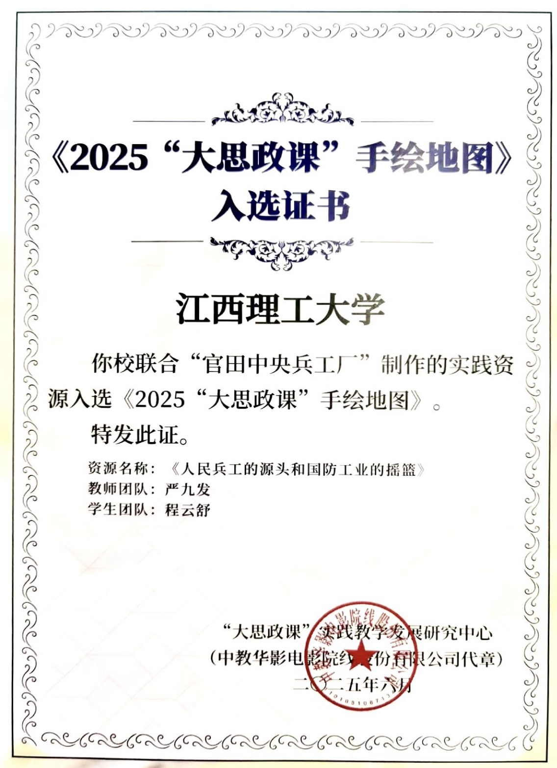 本网讯 近日,教育部正式公布了《2025“大思政课”手绘地图》作品入选名单,我院联合“官田中央兵工厂”制作的实践资源《人民兵工的源头和国防工业的摇篮》在全国2000余件作品中脱颖而出,成功入选。