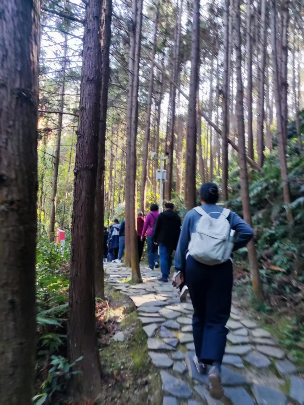 下午,活动转入油山,开展了一场别开生面的“红色行走”。教职工们沿着山林步道结伴而行,脚下是蜿蜒的小路,身旁是苍翠的松柏,山林回响着当年红军游击队员的足音与号角。大家边走边谈,不仅锻炼了身体,放松了身心,更在步履间实地感受到当年红军游击队辗转山林、克服艰难险阻的革命精神。这场登山活动,既是一次体能的锻炼,也是一次意志的磨砺和团队协作的实践。它让大家更加深刻地体会到革命胜利来之不易、今天幸福生活来之不易,感悟到坚定信念、团结奋斗的内在力量。