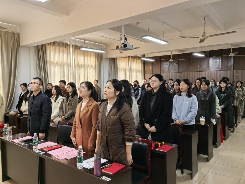 会议伊始,全体参会人员肃立起身、齐声奏唱《义勇军进行曲》,激昂的旋律不仅凝聚了青年学子的责任担当与理想信念,更彰显了共青团员的初心使命,为本届团员代表大会拉开了庄重昂扬的序幕。