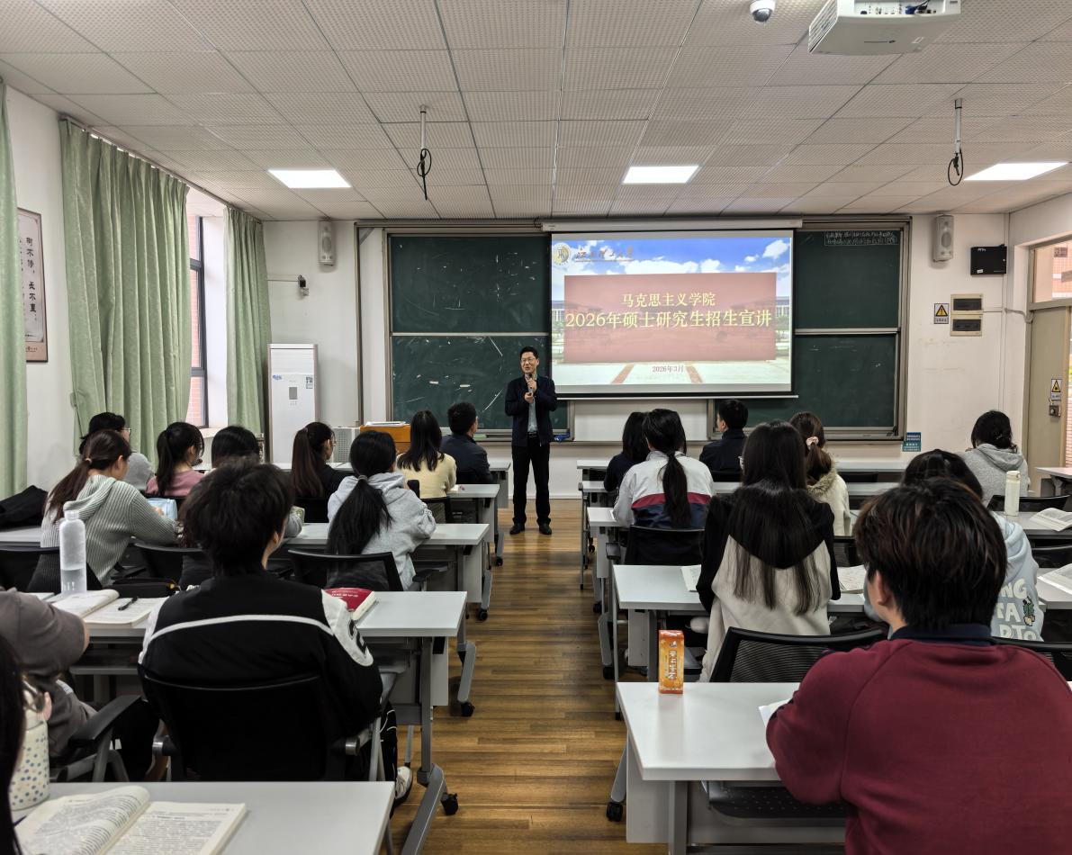 宣讲现场,我院先后至政法学院和马克思主义学院开展招生宣讲。招生宣传工作组系统介绍了学校办学特色、学院学科建设与人才培养成果,重点解读2026年研究生招生计划、奖助政策、培养模式及就业发展等考生关心的内容,并现场解答报考疑问。活动还特别邀请就职于韶关学院的我校优秀校友黎明辉博士作经验分享,为在场学子提供了鲜活、实用的报考参考。