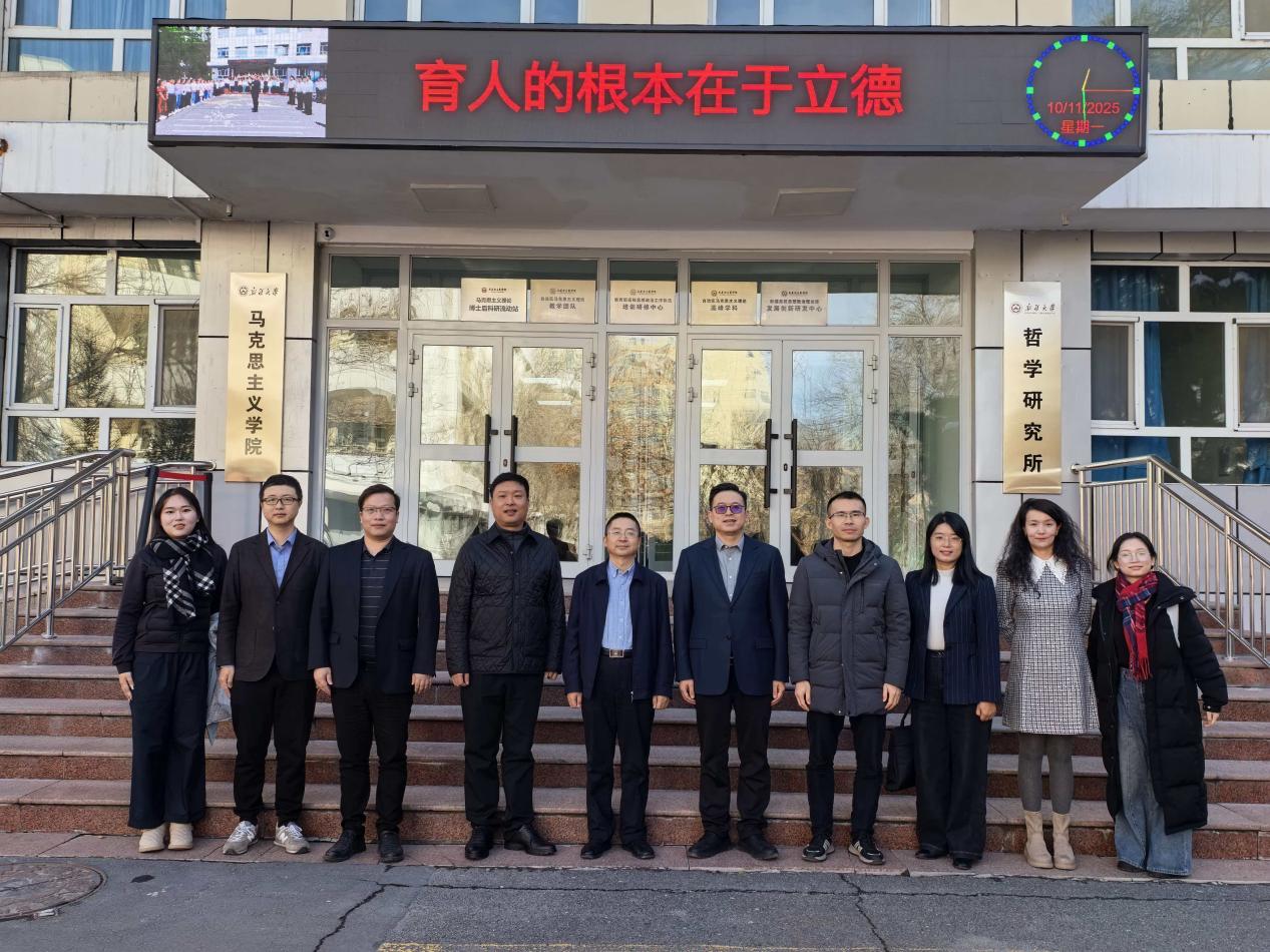 本网讯 11月10日至11日,我院院长邓显超、党委副书记黄东明、院长助理曾过生、青年教师李丹、2024级研究生柏紫怡和钟玉欣等一行6人前往新疆大学马克思主义学院、新疆师范大学马克思主义学院和新疆天山职业技术大学调研学习,并与新疆天山职业技术大学马克思主义学院开展集体备课。