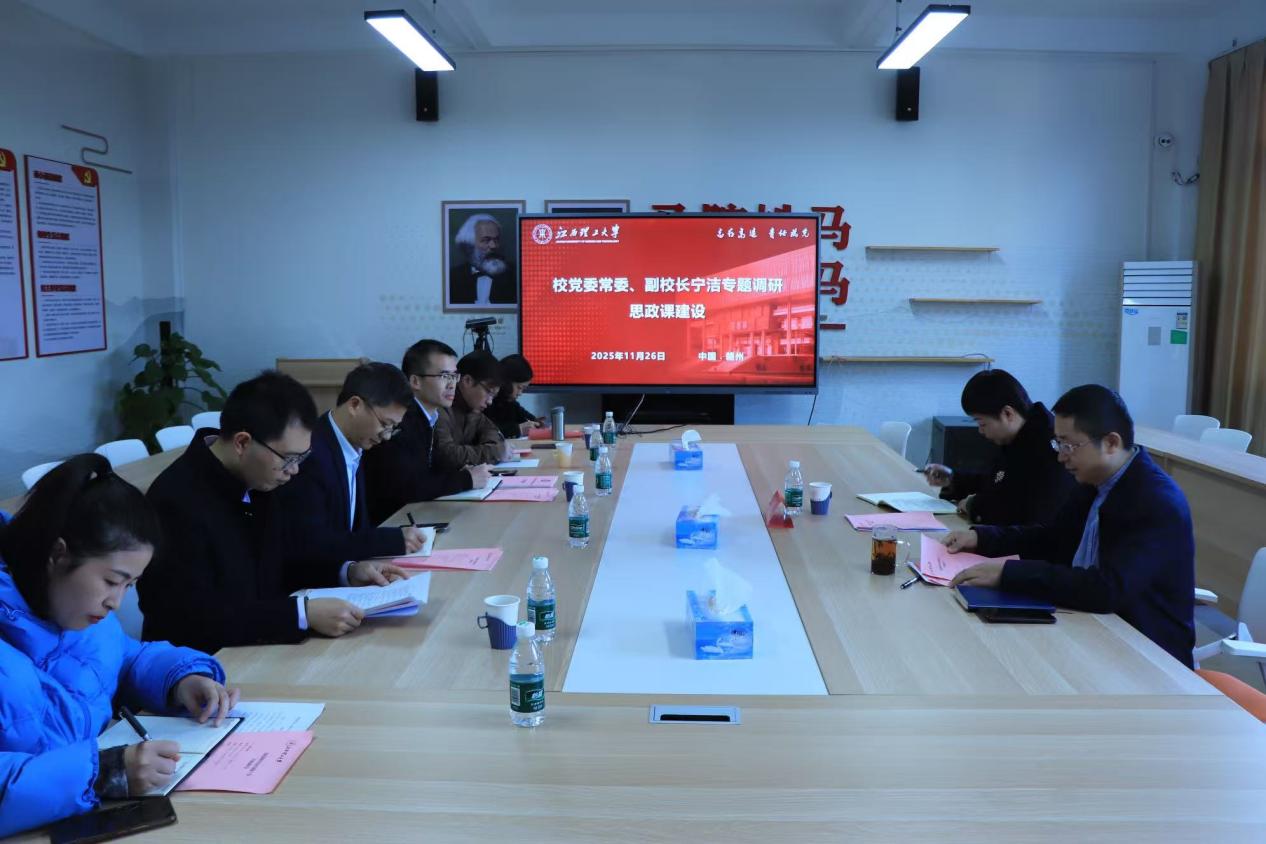 本网讯 为深入学习贯彻党的二十届四中全会精神,落实立德树人根本任务,推动思政课建设提质增效,11月26日,校党委常委、副校长宁洁到马克思主义学院开展思政课建设专题调研。马克思主义学院院长邓显超、党委副书记黄东明、副院长王经北和严九发、院长助理曾过生、思政课教师代表刘敏岚和陈楠楠参会。会议由邓显超主持。