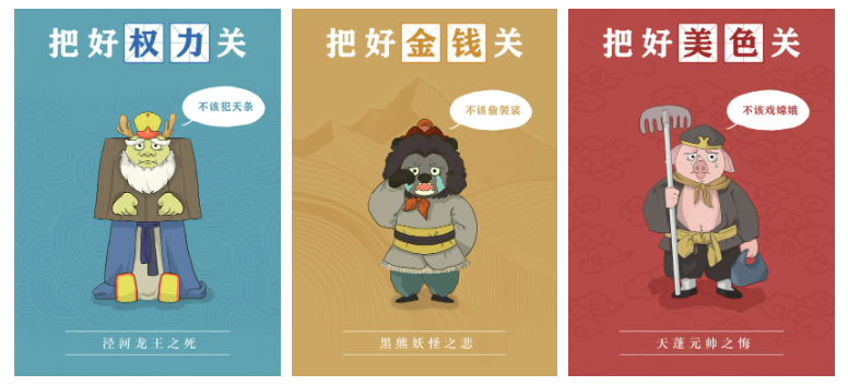 以泾河龙王乱下雨、犯天条的故事,警示严守权力边界、把好权力关;以黑熊精贪图财物、偷窃袈裟的行为,警示坚守清廉底线、把好金钱关;以天蓬元帅贪恋美色、调戏嫦娥的教训,警示恪守纪律规矩、把好美色关。该作品主题突出、生动易懂,兼具教育意义与传播价值。