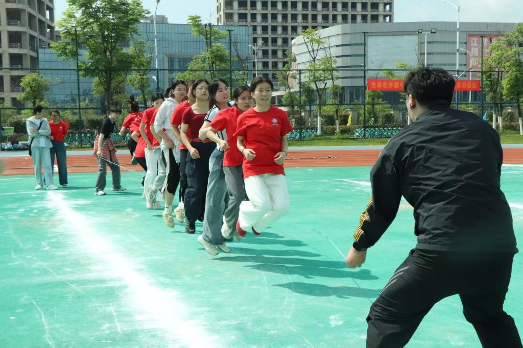 拔河赛场呐喊阵阵。二十名队员紧握绳索,哨声响起后共同发力、稳步后拉。经过激烈角逐,我院代表队配合默契、坚持不懈,接连拿下三场胜利,用实际战绩展现出团结一心、奋勇争先的精神风貌。